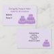 Pretty purple cakes with white icing and flowers in white with green centers on one and white with pink centers on the other. A soft mauve background. Customize with all of your business information as desired.
