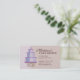 A sweet design for a sweet shop - perfect for a bakery, or specialty cake maker. A pretty party cake with pink icing and confetti sprinkle decorations sits atop a delicate brown cake stand, on a two-tone lilac purple and cappuccino background. Deep chocolate brown text on both front and back that you can easily customize with all your important business information.