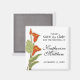 © 2011 Socialite Designs. Our elegant save-the-date magnets have a beautiful flowering calla lily in orange and gold. A truly beautiful addition for your fall wedding, or a wonderful favor for your guests. Do you require HELP with customizing? Please do not hesitate to contact me with your requirements.