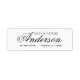 Elegant return address label with a prominent name line in a calligraphic script typeface. First name line in light compressed typeface to offset script. Address details in an understated minimal font, but still clearly readable. Fully personalizable. Contact to assist with customizations to fit your need. NOTE: For proper formatting you may want to manipulate text with spaces and/or line feeds (returns).