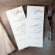 Elegant Wedding Menus – This black and white wedding menu features classic calligraphy and refined typography, perfect for an elegant reception dinner. Designed for formal celebrations, it beautifully highlights each food course with timeless sophistication. A chic and graceful addition to your table settings, this menu complements any elegant wedding décor.