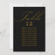 Black and gold wedding table seating card with elegant calligraphy and editable typography. Simple, modern minimalist design to suit your wedding colors. Table is lettered in handwritten script and the template is ready for you to edit the table number and your guest seating list.