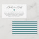 Elegant signature calligraphy "Books for Baby", baby shower book request card. Cards feature teal heart accent and matching teal and white stripe pattern backing.