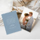 Our elegant dusty blue photo wedding thank you card design is the perfect way to share thanks with your guests following your special day. To the front is a full photo which is overlaid with beautiful white calligraphy font with simple text to make for an elevated look, reflecting your special celebration. To the reverse is white text with your personal message, greeting and names set on a dusty blue background. Easy to personalize for your own perfect day.