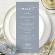 Elegant Calligraphy Dusty Blue Wedding Menu