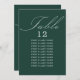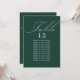 Emerald Green wedding table seating card with elegant calligraphy and editable typography. Simple, modern minimalist design to suit your wedding colors. Table is lettered in handwritten script and the template is ready for you to edit the table number and your guest seating list.