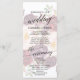 This elegant calligraphy faded floral wedding program is perfect for a fall wedding. The design features romantic and whimsical typography overlaying a gorgeous bouquet of blush pink, marsala and burgundy flowers. nclude the name of the bride and groom, the wedding date and location, thank you message, order of service, bridal party and an optional "in loving memory" memorial.