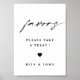 Add a touch of sophistication to your wedding with our Elegant Calligraphy Favor Wedding Table Sign. This stunning sign, crafted with graceful calligraphy, elegantly guides guests to your favor table, making it a charming focal point of your reception. Customizable to suit your wedding theme, it’s the perfect blend of style and function, ensuring your guests know exactly where to find their keepsake. Whether you're hosting a classic, modern, or vintage-inspired wedding, this high-quality sign adds a refined, personal touch that will leave a lasting impression.