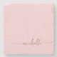 Elegant Chic Modern Gold Monogram Name Signature Script Custom Personalized Stone Coaster. This design featuring custom name in a cursive hand lettered swash tail font calligraphy (or typography) in gold on blush pink or baby pink color background. These are easy to customize it. Great stylish feminine housewarming gift, also for birthday, wedding, sweet 16 birthday party, bridal shower, mother’s day and It’s for the girl who loves unique stylish things.