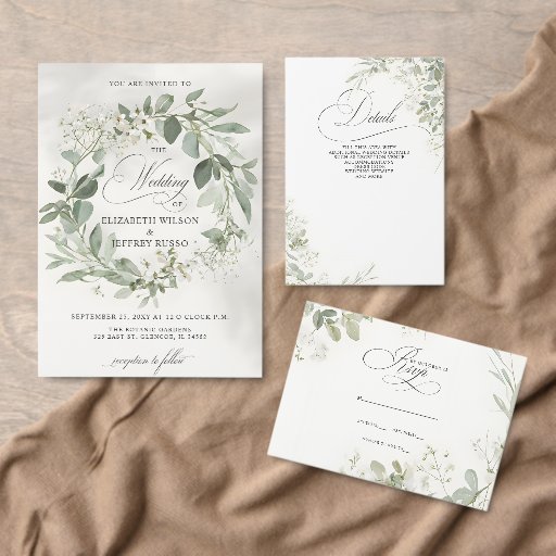 Rustic Elegant Calligraphy Greenery Eucalyptus Wedding Invitation
