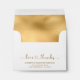 Elegant Gold Calligraphy "Love and thanks" Wedding Thank You Return Address Envelopes. Personalize them with your names and return address info. Feature a text "love and thanks" is written in a modern pretty hand lettered heart font typography. These envelopes can be used for special occasions like Weddings, Anniversaries, Holiday and special event.