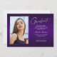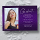 Double sided, two photo modern and elegant graduation announcement cards, featuring design elements of modern text with a unique handwritten style ink script. The graduate's photos on the front & back of the card are accented with a delicate & minimalist gradient boarder (The back photo is perfectly set and ready to be framed). The background is a special gradient design, creating beautifully vibrant shades of purple ranging from violet to deep lavender. The front of the card offers personalized text spaces for information about your graduation or can be reworded to make this card a grad party invitation. Perfect for the high school, college and university grad student.