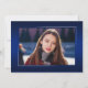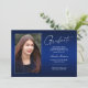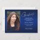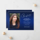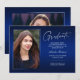 Double sided, two photo modern and elegant graduation announcement cards, featuring design elements of modern text with a unique handwritten style ink script. The graduate's photos on the front & back of the card are accented with a delicate & minimalist gradient boarder (The back photo is perfectly set and ready to be framed). The background is a special gradient design, creating beautifully vibrant shades of blue ranging from sapphire to deep navy blue. The front of the card offers personalized text spaces for information about your graduation or can be reworded to make this card a grad party invitation. Perfect for the high school, college and university grad student.