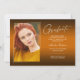 Double sided, two photo modern and elegant graduation announcement cards, featuring design elements of modern text with a unique handwritten style ink script. The graduate's photos on the front & back of the card are accented with a delicate & minimalist gradient boarder (The back photo is perfectly set and ready to be framed). The background is a special gradient design, creating beautifully vibrant shades of burnt orange. The front of the card offers personalized text spaces for information about your graduation or can be reworded to make this card a grad party invitation. Perfect for the high school, college and university grad student.