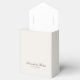 Minimalist personalized wedding favor boxes featuring elegant calligraphy names in black and ivory color design.