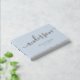 Elegant wedding guest book with the new surname in an elegant calligraphy script font. Real foil text on a light dusty blue or custom color background. The background color can be changed in the design tool.