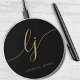 Elegant Calligraphy Monogram Modern Black Gold Wireless Charger
