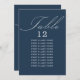 Navy Blue wedding table seating card with elegant calligraphy and editable typography. Simple, modern minimalist design to suit your wedding colors. Table is lettered in handwritten script and the template is ready for you to edit the table number and your guest seating list.