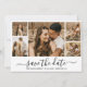 Elegant Modern Minimalist Calligraphy Script 5 Photo Collage Save The Date Cards in black and white. This delicate romantic design perfect for modern wedding. Features 5 (five) grid photo collage, a whimsical calligraphy in hand lettered style swash tail font. Easy to personalize it with your wedding details and pictures.