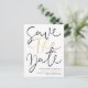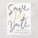 Elegant simple black and gold wedding save the date photo postcard. Design features of ''save the date'' in modern calligraphy script in deep black and gold color on white background. Add your message , photo and more details on the back. All Rights Reserved ©MSJ_DESIGNS