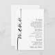 Elegant Calligraphy QR Code Wedding Menu Card. A smaller size 5 x 3.5". Stylish set script is rotated to the left hand side, with all the details stylishly to the right with lots of white space for a contemporary feel. Easily personalise with your details. And change the color of text and background if you wish via the edit further option.