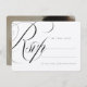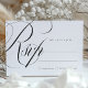 This stunning wedding RSVP card features a sophisticated calligraphy design in classic black script on a crisp white background. The oversized "RSVP" typography adds an elegant touch, while the refined serif font ensures clarity and readability. The minimalist yet luxurious design makes it perfect for modern, traditional, and formal weddings.