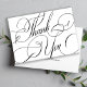 Classic romantic handwritten calligraphy script wedding thank you card with pre-printed message template and signature.