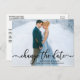 Modern Elegant Calligraphy Script Change The Date Wedding Postponed Couple Photo Postcard