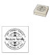 A 2 inch square custom round return address stamp embellished with a decorative scroll work emblem surrounding the last name. Insert your name and address in place of the sample text shown in the design template. Designed for you by Blackberry Boulevard.