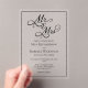 Celebrate your special day with this elegant acrylic wedding invitation card. Featuring "Mr and Mrs" in a romantic script calligraphy, and presenting your names and wedding details in a chic, minimalist style, this classic design exudes timeless charm and sophistication.
