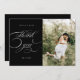 elegant calligraphy thank you photo card featuring prominent script font on different color backgrounds with your own photo and a kind note on the back
