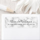 Classy and elegant return address labels with your name in an elegant calligraphy script font and the address below on a white marble texture with darker veins.