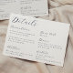 Impress your guests with this elegant formal wedding details card by JessicaAmber. This classic card features navy blue lettering over a white background, and displays the following details of the wedding: Accomodation, Children, Dress Code, Dinner, and Website. Browse my collection for the matching invitation suite. For more wedding suites, visit my store Zazzle.com/EventsByJessicaAmber ••• For custom orders, message me on Zazzle