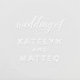 This elegant calligraphy wedding monogram embosser features a flowing script "wedding of" above the couple's first names in clean block lettering as the central design. Personalize with the bride and groom's first names for a romantic monogram keepsake for sealing wedding invitations, thank you cards, and favors. A lovely engagement or bridal shower gift.