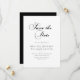 Elegant Calligraphy Wedding Save the Date. In timeless black and white this design features beautiful black and gray typography on white. Personalize with Bride and Groom's name and wedding information. Back is shown in black however it may be any color. Visit our store, Austen & Grace, to view the full wedding suite, matching products and more, and please contact us if you require extra matching products or any assistance: contact@austenandgrace.com