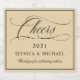 Personalize this elegant wedding sparkling wine label with the year or wedding date, the bride and groom's names and a special thank you message or other desired text. Elegant calligraphy script spells out Cheers.