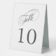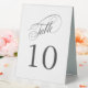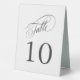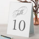 A convenient table tent sign with elegant table number and calligraphy script spelling out the word "table" with numbers that you edit for each table. This design is a versatile choice for weddings, banquets, dinners, luncheons, and parties. The neutral white and deep charcoal gray color scheme works well with all themes. To create table numbers for each table, personalize a single sign for Table 1 and add to cart, then personalize a table sign for Table 2 and add to cart, and so on until you have a sign for each table.