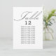 Black and White wedding table seating card with elegant calligraphy and editable typography. Simple, modern minimalist design to suit your wedding colors. Table is lettered in handwritten script and the template is ready for you to edit the table number and your guest seating list.