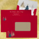 Complete your holiday greetings with this elegant Christmas envelope featuring modern gold foil holiday trees on cherry red. Designed to perfectly match our Elegant Gold Foil Holiday Card collection, this envelope adds a polished and festive finishing touch. Customize with your return address for a coordinated holiday look your friends and family will love.
