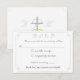 Design front features your text displayed in the traditional format for a Catholic wedding response card and is framed with an elegant silver-colored border. Heading is displayed at top in an elegant Nuptial font followed by the request line. Two options are available along with a place for recipient to write in the number of the party attending. Your message of gratitude is displayed below.
