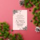 This beautiful wedding invitation is designed for a Catholic ceremony with a nuptial mass. It features real foil printing on a pale blush pink colored background. The beautiful design has fancy script lettering with ornate curls and swirls in the corners. Stylish, elegant, sophisticated, and chic, this invitation is fancy and glam.