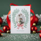 Elegant Cedar Greenery Wreath Red Bow Christmas Letterpress Photo Cards