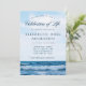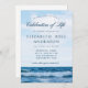 Celebration of Life Memorial event announcement invitation with beautiful blue sky and waves photography and elegant script typography. Personalize text for your event. Invite family and friends to share favorite memories and stories in loving memory of time spent together and pay tribute to a family member or friend.