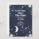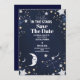 Printed on high-quality, textured cardstock, this save-the-date card has a rich, tactile feel that adds to its elegance. The back of the card features a continuation of the starry sky pattern or a simple solid color that complements the front design, tying the entire piece together.