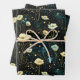 Elegant Celestial Floral Midnight Blue & Gold Wrapping Paper Sheets