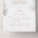 Elegant All- in- One tri- fold wedding invitation with perforated RSVP postcard with delicate watercolor sky, stars and moon encasing your wedding details. Top inside section with beautiful phases of the moon. Modern calligraphy elements, dainty stars and details on moons in faux gold foil. Rest of text in golden hues. Environmentally friendly, as there is no need for extra insert cards, RSVP cards or even envelopes, this invitation has it all! Ability to add both Wedding Ceremony and Reception details, as well as RSVP postcard ready for guests to fill in and mail! Option to order invitations with printed (or hand write later) guest name on the back so you can mail card with no need of any envelope, - OR - if you prefer to use an envelope, simply erase guest name and address characters from text boxes to remove, or add a quote instead. Attractive design for the elegant, yet practical and eco-friendly couple! Part of our" White, Gold and Silver Celestial Stars and Moon" collection with a variety of coordinating products available. Visit the entire collection at: https://www.zazzle.com/collections/gold_white_and_silver_celestial_stars_and_moon-119446192561160871  Also available with text in black.