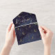 This all-in-one wedding invitation features elegant typography on a celestial moon and stars background. The invitation includes a perforated RSVP card with your wedding website QR code. Designed by Thisisnotme©