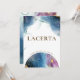 Enjoy a celestial constellation theme with our constellation table signs. Lacerta constellation table name card with exquisite watercolor stains and celestial globe map with constellations on the front. The back with a beautiful watercolor galaxy design with the Lacerta constellation in the center. Design with blue, navy, turquoise, purple, magenta, fuchsia, and golden watercolor hues. Part of a collection with many constellation table name cards available, as well as table seating chart cards, seating plan signs, menus, and more. If you need any other constellation name not available on our collection set, please feel free to change the name using the table text box provided, so you can complete your set.