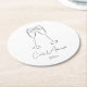 Elegant Champagne Glass Wedding Engagement Round Paper Coaster