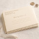 This elegant champagne gold envelope address design features a refined ivory background with classic serif return address text and a graceful script line reading “Kindly deliver to.” The layout creates a timeless and sophisticated presentation that pairs beautifully with formal wedding invitations and milestone anniversary stationery. Designed for couples celebrating elegant events such as weddings, vow renewals, and golden anniversaries, the clean lines provide space for handwritten guest addresses while maintaining a luxurious look. The balanced typography and soft gold tones make the envelope feel polished, romantic, and memorable for a special celebration.